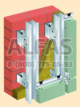 Система предназначена для крепления облицовки элементами кассетного типа, выполненными из композитных материалов.