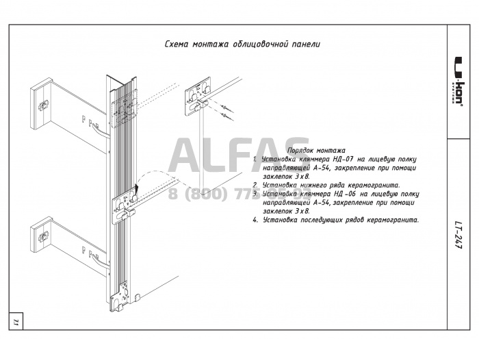 Фасадная система U-kon LT-247 под Фасадный керамогранит